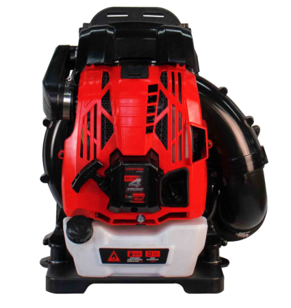 На агрегат установлен мощный 4- тактный двигатель. Мотор обладает высокопроизводительностью, с низким расходом топлива и масла, а также имеет повышенный ресурс по сравнению с двухтактным двигателем, работает на чистом бензине АИ-92, не требуется топливная смесь, как на 2-х тактный двигатель, уровень шума значительно ниже чем у аналогичных воздуходувок с 2-х тактным двигателем.